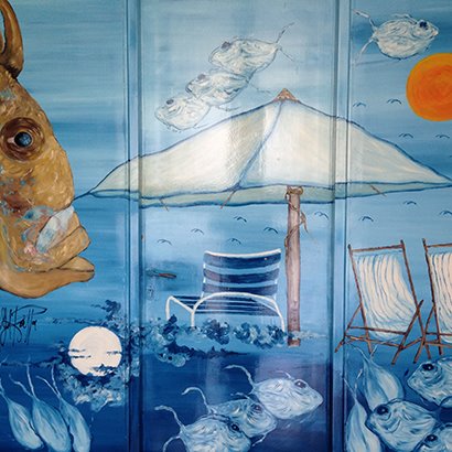 È stato amore a prima vista. Un tramonto, le ali di un gabbiano, i colori dei riflessi nel mare. I suoi dipinti ti fanno sognare ad occhi aperti. I miei preferiti sono i pesci multicolor. Se fosse un musicista i suoi ritmi sarebbero caraibici. Se fosse un cocktail sarebbe un Sex On The Beach. Se fosse un colore di certo sarebbe il rosso, elemento ricorrente nelle sue opere.