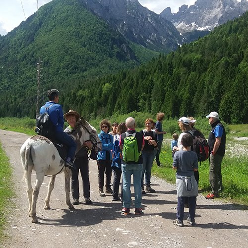 Una passeggiata nei dintorni di un paese o un’escursione di montagna, in compagnia di un asino, è un’esperienza che consente di entrare in contatto con la natura in modo appassionante e rilassante! Accudire, strigliare e condurre l'asinello trasmette serenità, gioia e fiducia soprattutto ai bambini, che possono provare esperienze di pet therapy e cavalcata. Un modo originale per scoprire i parchi delle Dolomiti Friulane e delle Prealpi Giulie!