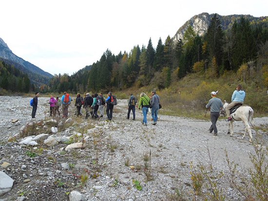 Quindi è iniziata la passeggiata, con altre spiegazioni: le cime intorno a noi hanno acquistato tutte un nome e sono diventate delle familiari compagne di cammino; il fiume Tagliamento ha raccontato quanti piccoli organismi vivono nelle sue acque e sotto i sassi; i boschi che ricoprono i fianchi delle montagne hanno dato molte informazioni: sul clima, sul tipo di suolo, sull’esposizione del versante.