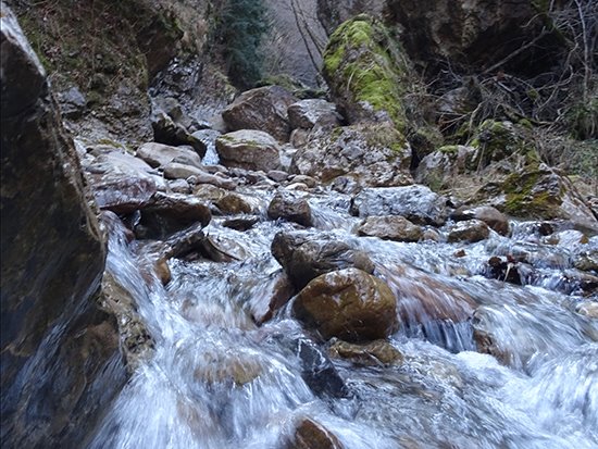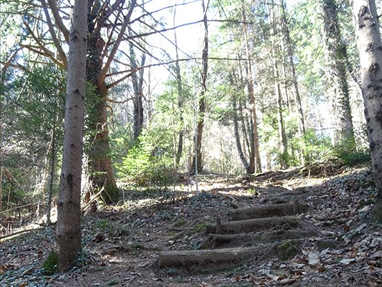 Ma il nostro obiettivo è arrivare al cosidetto "ponte romano"scendiamo lungo il sentiero nel bosco che porta all'abitato di Sezza. In fondo all'alveo si sente scorrere l'acqua del rio Bueda.