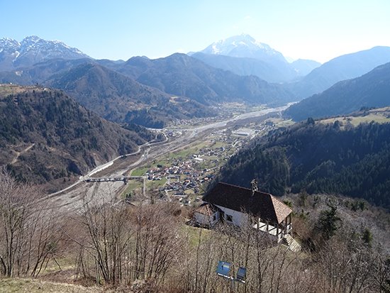 Saliamo verso la chiesa dove c'è una vista panoramica che abbraccia tutta la valle del Bût.