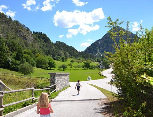 Ci lasciamo un po’ incantare dal verde brillante dei prati e ritorniamo indietro percorrendo la strada forestale che ci porta alla fine del paese, qui si apre un bel campo in cui i bambini si divertono a correre fra l’erba frusciante cercando di catturare farfalle e cavallette. Concludiamo l’anello attraversando Malborghetto fino ad arrivare al Palazzo Veneziano, sede del Museo Etnografico, dove si può continuare la visita. È già venuta ora di pranzo e quindi decidiamo di fermarci all’ombra dell’imponente tiglio secolare nel cortile del palazzo e mangiare dei panini sull’erba.