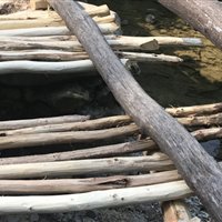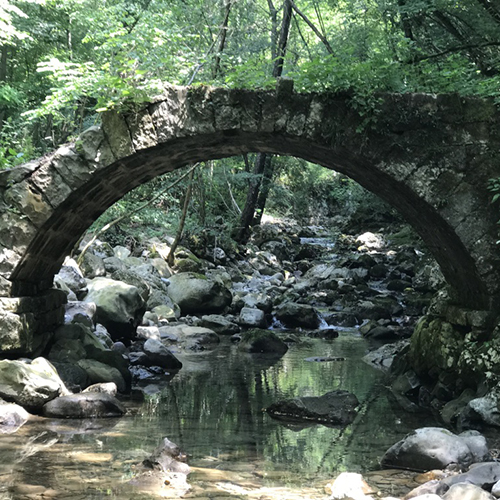 Chiodi di legno nel 2017, sembra incredibile, quasi un sogno. Ma ho visto realizzare da Roberto cose incredibili negli anni. Sotto i verdi rami, all’aperto, tengo la lezione sugli alberi e sulle fibre del legno, su come si tagliano e quando è meglio usarli. I ragazzi ascoltano attenti e nella pausa diventiamo già amici e li sfido a correre sui tronchi. Naturalmente vincono loro! Ma la sorprese non sono finite. “Vieni a vedere il torrente. Per evitare di non avere acqua nei periodi di siccità, avevano scavato dei piccoli laghetti e costruito delle chiuse in legno”. Roberto mi mostra i fori degli antichi pali, le pareti di roccia intagliate, i limpidi specchi di acqua fredda che riflettono le fronde ombrose. Penso al sudore e alla passione di quegli uomini antichi. Al loro lavoro. Al lavoro di questo architetto con la A maiuscola. Alla sua passione. Alla sua fatica. Alla sua fiducia nella gioventù e nel futuro. Alla sua cocciutaggine nel voler tramandare la storia e gli antichi mestieri. Alla magia di questa valle incantata. Ai suoi elfi e alle sue fate-agane. Sotto il ponte di roccia il rumore dell’acqua racconta storie antiche, fiabe e leggende.