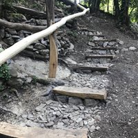 Con l’auto ci addentriamo lungo una strada sterrata. “Eccoci, quello è il vecchio mulino, stiamo rifacendo le scale e il ponte”. Sotto di me, sulle sponde del torrente Grivò, in un piccolo pianoro, un vecchio mulino, perfettamente restaurato. Le vecchie pareti in pietra e calce, il tetto anch’esso in lastre di pietra. Il sentiero con pali di castagno e acacia per agevolare il cammino. Mi avvicino stupito. Guardo il ponte in pali di acacia scortecciati. “Ecco vedi ora dobbiamo inchiodarli ai travi. Stiamo facendo i chiodi.” Mi dice sereno, come fosse la cosa più maturale del mondo Roberto. “Come state facendo i chiodi?” “Certo, un tempo i chiodi erano di legno, così sto insegnando ai ragazzi come si fanno. Poi con questi chiodi fisseremo i pali sui travi e il gioco è fatto”.
