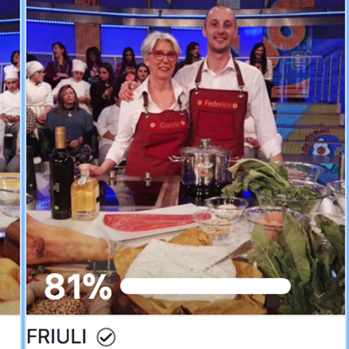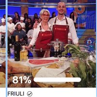 Il Friuli Venezia Giulia, rappresentato dal cuoco Federico Mariutti e dall’esperta di prodotti contadini Gianna Buongiorno, ha battuto il Molise nella sfida culinaria di Il Campanile Italiano nella puntata di venerdì 12 gennaio a La Prova del Cuoco. Ho avuto la possibilità di essere presente nello studio del programma Rai di Roma tra il pubblico, proprio alle spalle della cucina dei friulani. Vedere com’è il dietro le quinte della diretta è stato davvero divertente e istruttivo; l’emozione di sapere che così tanti telespettatori stavano guardando in diretta la nostra splendida regione in gara è stata grande. La votazione è avvenuta online, attraverso la pagina di Facebook de La Prova del Cuoco e il sostegno dei followers è stato davvero eclatante: oltre 3600 voti, pari all’81% di preferenze per il Friuli Venezia Giulia. A vincere è stata proprio la genuinità dei prodotti presentati e l’originalità della ricetta: Federico e Gianna hanno presentato delle fettuccine di fagiolo antico di San Quirino con crema di cavolo broccolo friulano, mandorle e trota affumicata di Caneva.