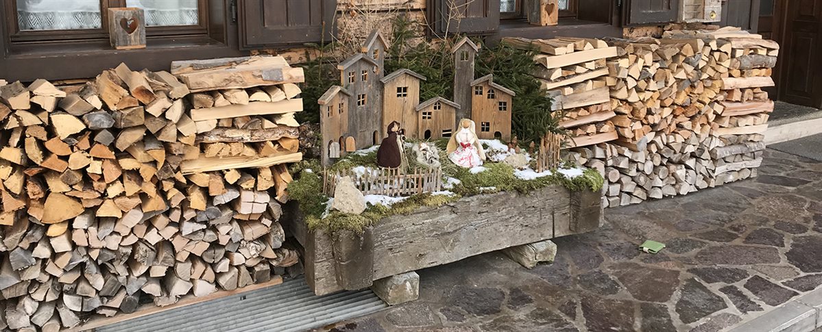 We leave early and with the sun rising we arrive among the houses and the typical rustic buildings of Sauris. There are cribs by the perfectly stacked wood piles, a festive spirit and scent of timeless simplicity, but, of course, very little snow. Even on the peaks around the village there are larger areas of brown grass burned by the cold than those covered with white. Alessandra is worried for me: “I’m sorry, I thought there was more snow”. But I do not want to sadden her: “Don’t worry, it’s fine as it is. We can go for walks in the woods”, I answer as I look a bit disconsolately at the snowshoes and snowboard in the boot of the car. But, from the chalet, Augusto comes to pick us up on a snowmobile. “Well, if a snowmobile can get by, I can go snowboarding”, I think to myself. “Ale, you go with him, I’ll come down on my snowboard”. In actual fact, however, it’s less than 500 metres of descent on the now closed old piste, to get to a beautiful carefully renovated stavolo or chalet.