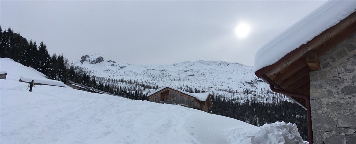 Dopo tanta fatica è sempre un piacere raggiungere il rifugio, dove lo staff si impegna per farci sentire come a casa. Quattro chiacchiere e un buon piatto caldo in tavola sono il modo migliore per ricaricarsi prima del viaggio di ritorno, che percorriamo sullo stesso sentiero: per chi scende con gli sci il tragitto si conclude in pochi minuti, ma ricordatevi di aspettare gli amici scesi con le ciaspole.