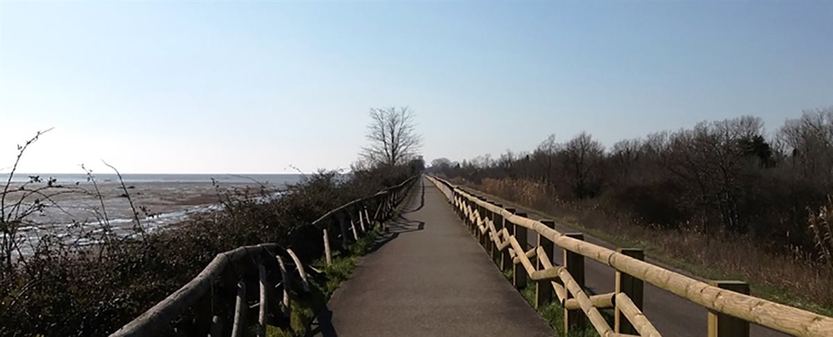 Lungo il percorso ci siamo fermati spesso in corrispondenza delle scalette in legno con cui si può salire sull’argine e abbiamo ammirato lo splendido panorama della laguna, che si allungava fino al golfo di Trieste e alle coste dell’Istria.
