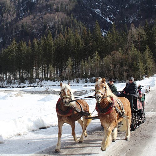 Io ho percorso il sentiero soltanto fino al bivio che porta all’agriturismo vicino al percorso, molto semplice da individuare sia perché è segnalato sia perché c’è una strada che attraversa il torrente Saisera per arrivarci. L’agriturismo è conosciuto soprattutto per il suo maneggio. Qui infatti potete prenotare passeggiate a cavallo o le ancor più romantiche gite sulla slitta trainata dai cavalli. Immaginate di percorrere questa foresta millenaria su una slitta che scivola sulla neve fresca trainata dai cavalli, proprio come se foste tornati indietro nel tempo.