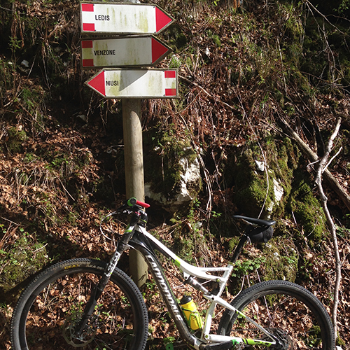 Con l'amico Fabio parcheggiamo la macchina nei pressi del camping di Gemona del Friuli, dove approfittiamo anche per bere un caffè al bar. Da qui, inforchiamo le mountain bike e subito iniziamo a pedalare sulla strada bianca che porta in direzione del centro sportivo Laser e poi a sella Sant'Agnese. Questa risulta da subito in salita ma molto pedalabile. Anche se partiti “a freddo” non si accusa alcun affanno. La strada sale costante con dei rettilinei intervallati da tornanti, circondati ai lati da una piacevole vegetazione che permette la vista sul territorio circostante.