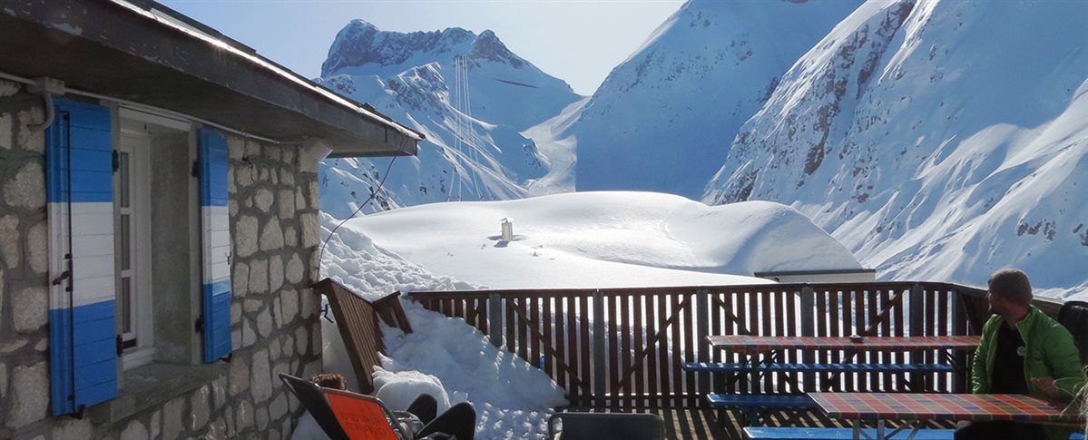 Alle 8.45, quando apre la cabinovia, sono in partenza; raggiungo la cima e mi gusto caffè e pan dolce al Rifugio Gilberti, molto frequentato anche d’estate e da non sciatori: prendere il sole sulla terrazza con queste giornate e questo clima è un vero lusso dei sensi.