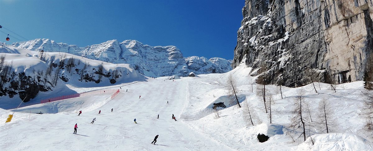 Giornate cristalline, neve che ancora “tiene”, piste completamente illuminate non solo sul versante sloveno (già, perché qui si sconfina sciando andata e ritorno tra Italia e Slovenia: semplicemente sulle proprie gambe si arriva infatti a Bovec).