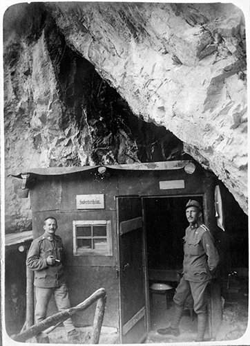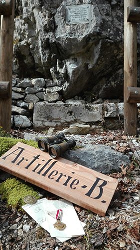 Im zweiten der beiden Lose kann eine andere kleine Höhle besichtigt werden. Sie bot der Infanterie Schutz und auch dort steht noch das Fundament der Baracke der Truppen. Sie war der Treff- und Ausgangspunkt der Soldaten, die auf der Suche nach nützlichen Informationen des Feinds und zum Festnehmen von Gefangenen in die Wohnsiedlung Pontafel ausschwärmten. Weniger als hundert Meter weiter finden wir eine vom 149. Regiment Landsturm realisierte Quelle, auf die eine Steintafel mit dem deutschen Satz: „Du Quell gefasst von Kriegershand erquicke den Wandrer im Kärntnerland“ hinweist. Der Weg führt in Richtung Pontebba auf der alten Straße zum Nassfeldpass bergab zum Bombach. Wenn man will, kann man die Wohnsiedlung zu Fuß erreichen, ansonsten kehrt man auf dem Weg des Themenparks zurück zum Hauptparkplatz.