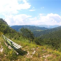 Inizialmente si percorre una mulattiera su tratto erboso, poi, oltrepassata la strada asfaltata che da Pedrosa porta a Reant, questa diventa un sentiero del verde sottobosco che mi accompagnerà per tutto il pomeriggio. Il sentiero si fa più pendente ma costante e non presenta alcuna difficoltà. Dopo qualche decina di minuti si raggiunge un bellissimo punto panoramico, dotato anche di panchina, da dove si possono ammirare le località di Reant e Canebola, i vicini Monti Joànaz e Craguenza e i più lontani Monti Matajur, Canin e Musi.