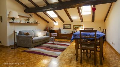 We have a beautiful attic apartment of 83sqm with two bathrooms that can accommodate up to 5 people and a spacious and bright studio apartment of 54sqm with a spaciuos bathroom suitable for couples with children up to 4 years of age. Each apartment has a fully equipped kitchen, washing machine, drying rack; household linen and towels are included.