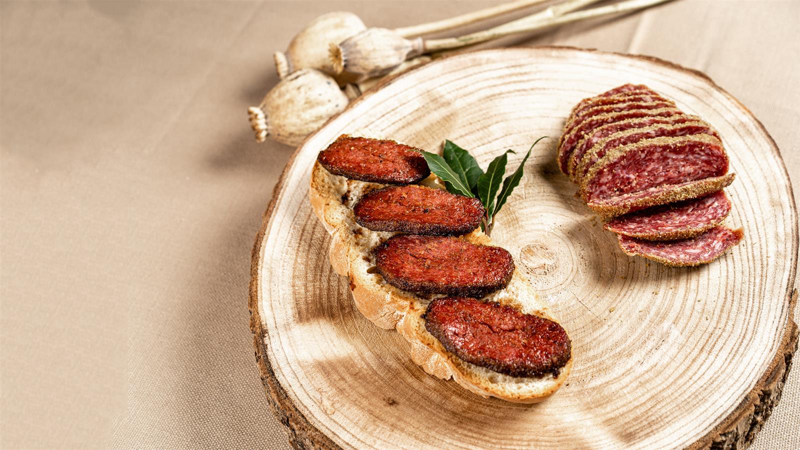 La ricetta di oggi vede una pitina ingentilita da una parte di grasso di suino che aiuta a mantenere l’impasto più morbido e a smorzarne il sapore intenso.