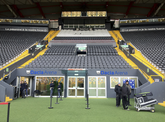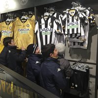 Nei giorni precedenti abbiamo prenotato la visita guidata “Udinese Stadium Experience” e nel pomeriggio prima della partita ci siamo recati all’Ingresso Autorità della Dacia Arena dove siamo stati accolti da gentilissime hostess che ci hanno accompagnato in un tour all’interno della casa dell’Udinese Calcio.