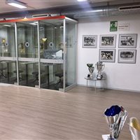Dopo le foto di rito sul campo, il tour ricomincia e visitiamo la sala stampa, dove nel dopo partita si tengono le conferenze e le interviste. Qui ci sono esposti dei cimeli storici interessanti e le coppe delle vittorie più prestigiose, su una parete sono state mantenute le cabine telefoniche che nei tempi in cui gli smartphone non esistevano, erano l’unico mezzo con cui i giornalisti potevano comunicare freschi aggiornamenti sui risultati delle partite alle redazioni. Mi sembra proprio di vederli: concitati, la cornetta ferma tra la spalla e l’orecchio e una fila di colleghi sbuffanti che aspetta il proprio turno. Che bell’idea mantenere questo ricordo del vecchio Stadio Friuli!