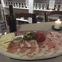 Questa sera siamo pieni di fame e ci lasciamo consigliare dalla proprietaria che ci dà il benvenuto con un tagliere di profumati affettati e formaggi da accompagnare con le creme: spazzolato!