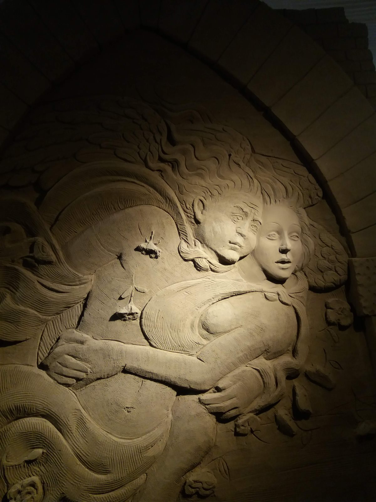 Ich besuche diese Krippe zum ersten Mal und erwartete mir - ehrlich gesagt - nicht besonders viel davon. Doch ich musste mich vom Gegenteil überzeugen lassen: sie ist wirklich beeindruckend und bewegend. In einem großen Zelt, das vor der Terrazza a Mare in der Nähe des Strandbüros 4 aufgebaut ist, führt ein Rundgang zu den verschiedenen Sandskulpturen, die von aus ganz Italien angereisten Künstlern der „Accademia della Sabbia“ für die Krippe gestaltet wurden.