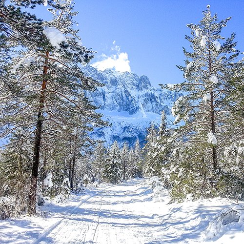 Die Straße von Valbruna (nur wenige Kilometer von Tarvis entfernt), die uns ins Saisera-Tal führt, fand ich immer gut geräumt und problemlos befahrbar, auch nach schweren Schneefällen. Aber Winterreifen sind unbedingt erforderlich. Entlang der Straße gibt es viele Parkplätze und wir können unsere Wanderungen an verschiedenen Orten im Tal beginnen, uns links in den Wald begeben und den Wegen folgen. Es ist kein großer Höhenunterschied zu überwinden (ca. 150 m im Durchschnitt, hängt davon ab, wo man beginnt und welche Route man wählt).