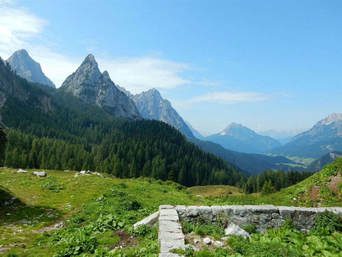 Dann geht es weiter über zusätzliche Etappen, bis wir Timau erreichen, wo die Berge Heimat vieler Geschichten aus der Zeit des Ersten Weltkriegs sind, einschließlich der Ereignisse der Karnischen Trägerinnen.