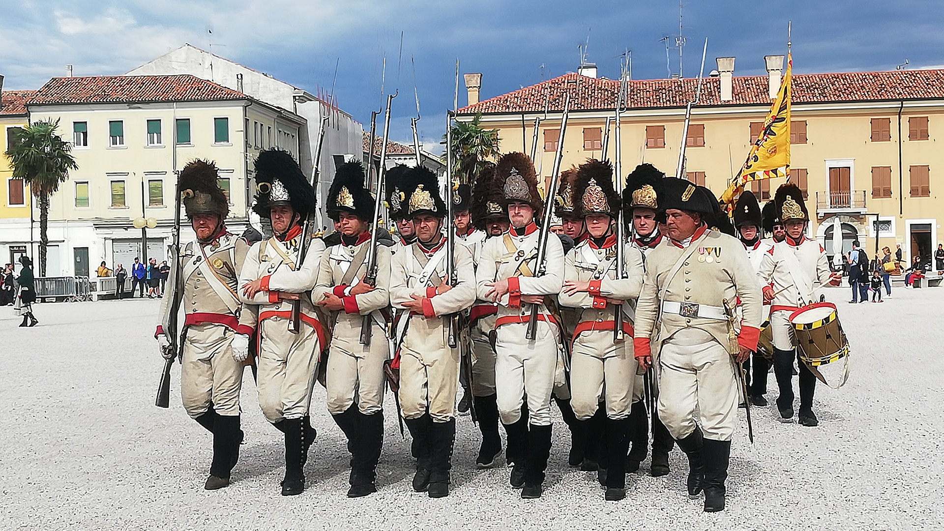 Eine ist die "Palma alle armi - 1809 L'Assedio" (Palma zu den Waffen - 1809 Die Belagerung): diese findet in Palmanova statt, dem berühmten Weltkulturerbe, einer Stadt in Sternenform. Bei diesem Anlass verwandelt sich die Stadt in ein großes Set mit einem Kalender voller Attraktionen, dessen Höhepunkt das Reenactment der Schlacht darstellt.