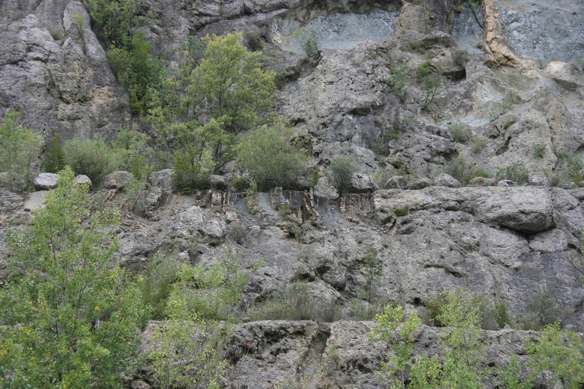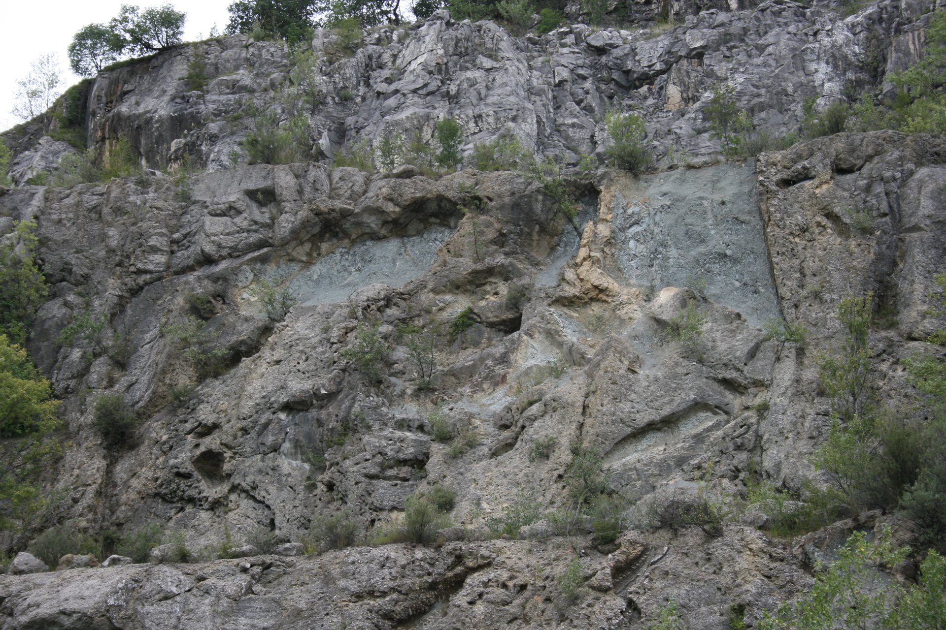 Der Zugang zum Steinbruch ist verboten, aber die Steinbruchwände sind deutlich von der Straße von Sanguarzo nach Vernasso gut sichtbar.