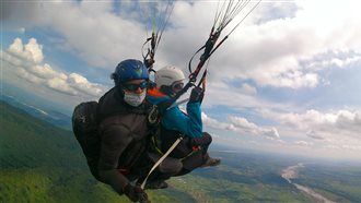 Der Gleitschirm ist ein spezieller Fallschirm mit einer rechteckigen Form, mit dem man durch den Schub der Beine abheben kann. In der Tat sind die Berghänge perfekt für den Flug.