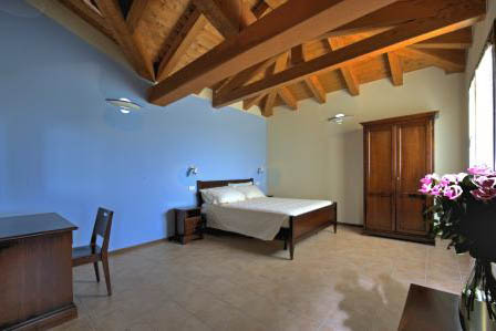 In front of a historic farmhouse else pizzeria / restaurant complete the offer to stay.
