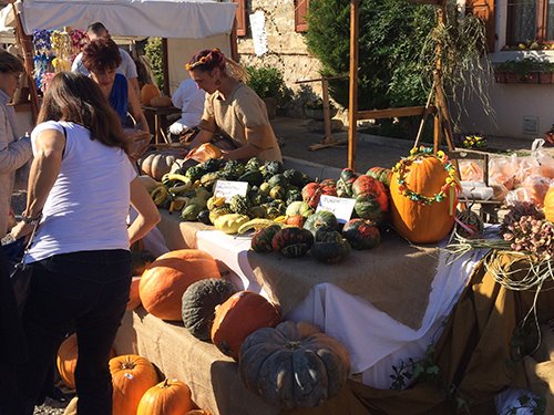 Rigorosamente in costume tipico medioevale anche i venditori delle bancarelle sparse in tutta la città con in esposizione prodotti tradizionali, pezzi di artigianato locale e naturalmente zucche di tutte le varietà e dimensioni, protagoniste indiscusse della festa. Io, come molte altre bimbe e ragazze, travolte dall'atmosfera folkloristica, ci siamo improvvisate dame medioevali indossando come ornamento delle graziose coroncine di fiori intrecciati create dagli artigiani della città.