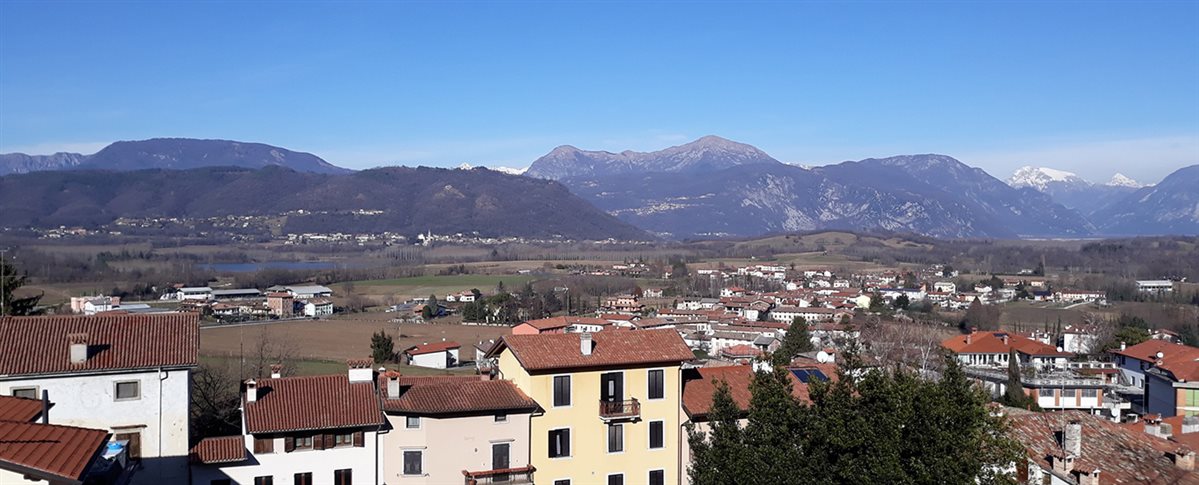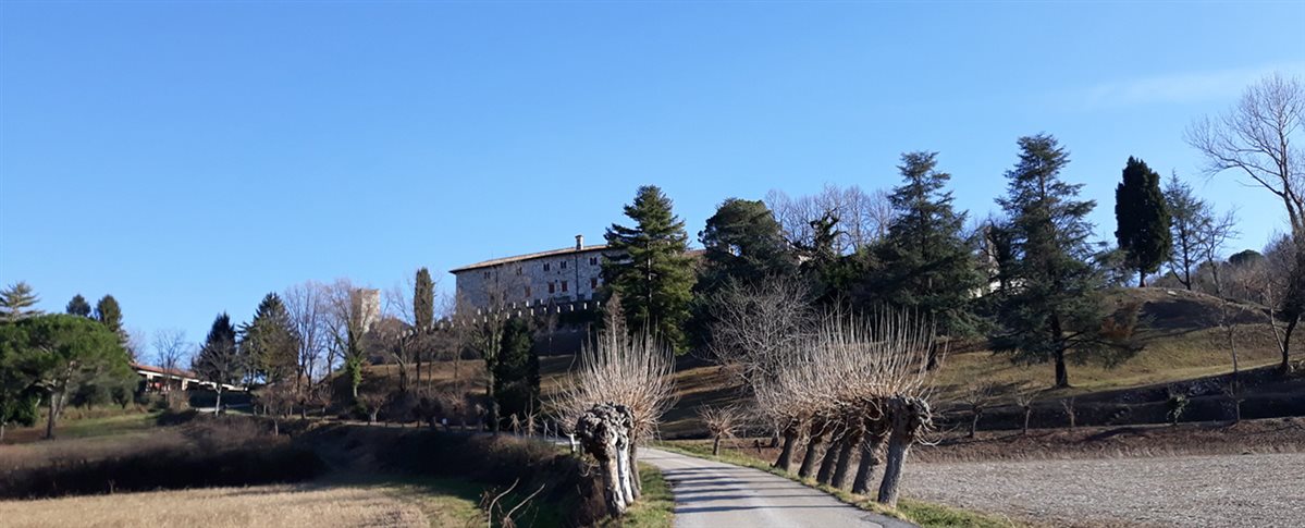 I go down to San Pietro, making a photographic stop at the hairpin bend with a viewpoint, of course, this time looking south. From here we can see our great river advancing over the plain; it has just passed the Pinzano narrows and now there are no more obstacles between it and the sea. But between me and my workplace there is still a bit of road, so it would be better if I were to accelerate the pace. There is still time for some wonders: to mention just one, the famous Arcano climb, close to the bare mulberry trees with the perfectly preserved castle in the background.