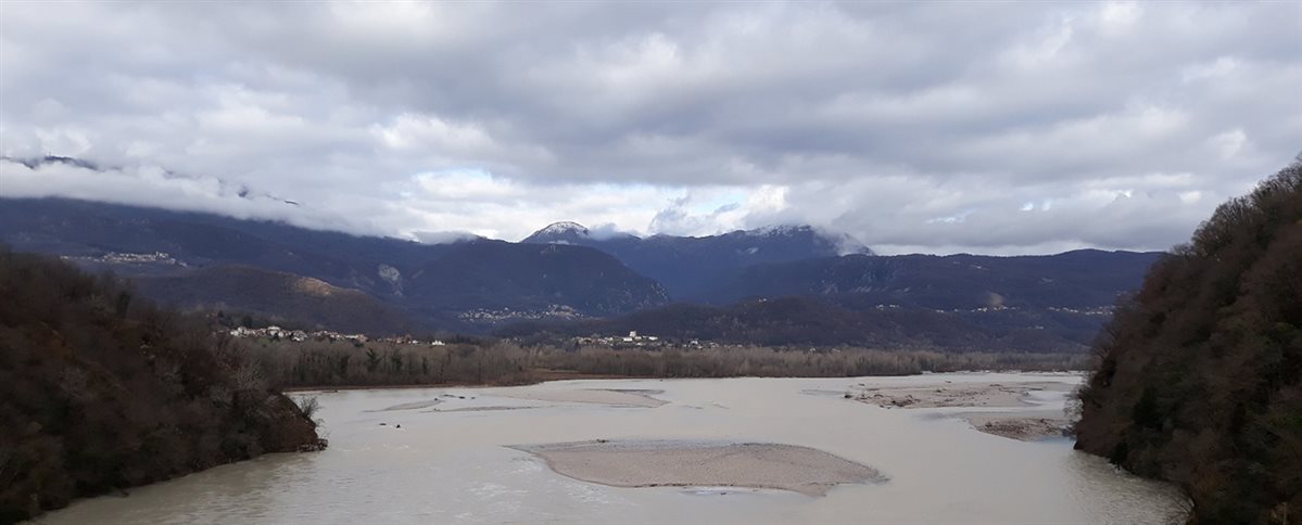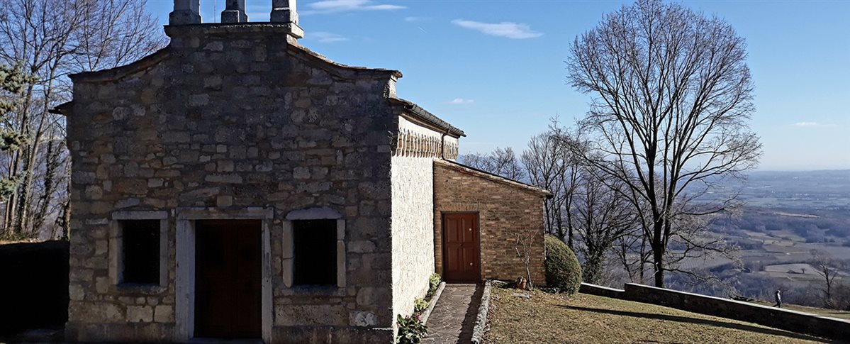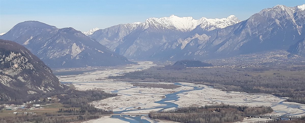 I arrive in San Daniele through the “Portonat” and enter the historical centre. I stop every five minutes to take pictures of the places where I was born and grew up. I should be used to these places but habit is the antechamber of boredom and for me it's as though it were my first time in these places. Muris is not far. I stop at the lake of Ragogna. It’s been so long since I last felt its breath: what a spectacle! Winter elevates it to an ethereal beauty, the silence broken by its light waves. Now time is passing but today is not a day for peering down at the handlebars: to tell the truth it almost never is: Friuli is too beautiful not to admire it always! I start the climb, which is hard right from the start, of a “Zoncolanian” steepness but fortunately the effort required is short-lived: 3 km. Just before the summit, I leave the main road and head towards the little church of San Giovanni. Here every year we commemorate the sinking of the ship “Galilea” during the Second World War, in which a thousand alpini—mountain troops—of the Gemona battalion returning from Greece were killed. From the plain below the church the view opens to the north. The Tagliamento stands out: its course in intertwined channels is a wonder for the eyes. My mind is seized and my heart starts to beat faster, so great is the emotion.
