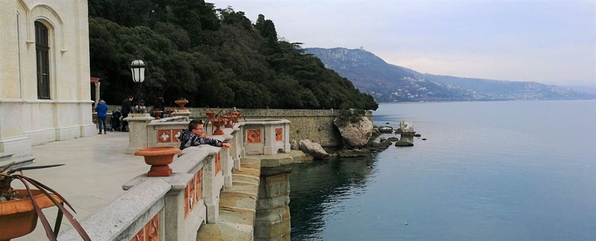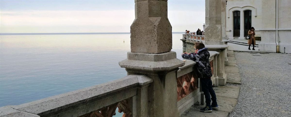 As always leaving the motorway at Sistiana to follow the coastal road is a thrill: the blue of the sea hits the eyes and from here high up it seems almost that you could touch it. We stopped in Miramare, for a first stop at the castle that belonged to the Habsburgs and represents a romantic preamble to the beauties of the city. Stretched out over the water, this princely residence greatly stimulates the imagination, especially that of children who expect the arrival of a dragon in the sky at any moment, ready to regain possession of the tower. The walk in the park was regenerating and Sebastiano could let off steam running up to the top of the steps. And he too was fascinated by the view, even though there was no sun.
