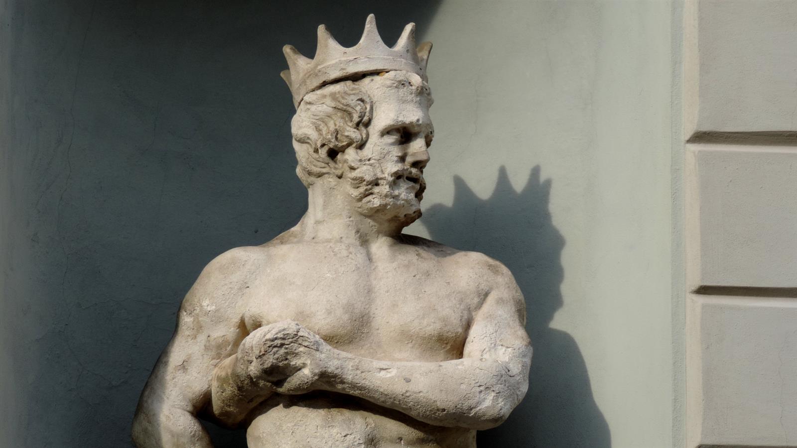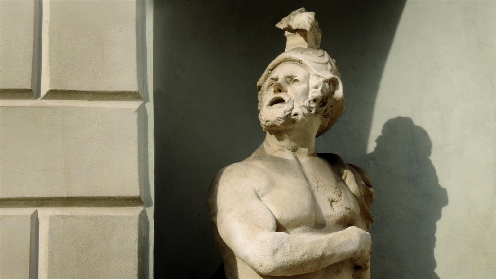 The sculptures on the main façade (Apollo among the muses of Tragedy and Lyric) as well as those of the niches of the basement (Pluto and Mars) were attributed to Antonio Bosa, Canova's student. On the same façade are also five cannon balls, to remember the bombing by the French navy experienced by the city in 1813.