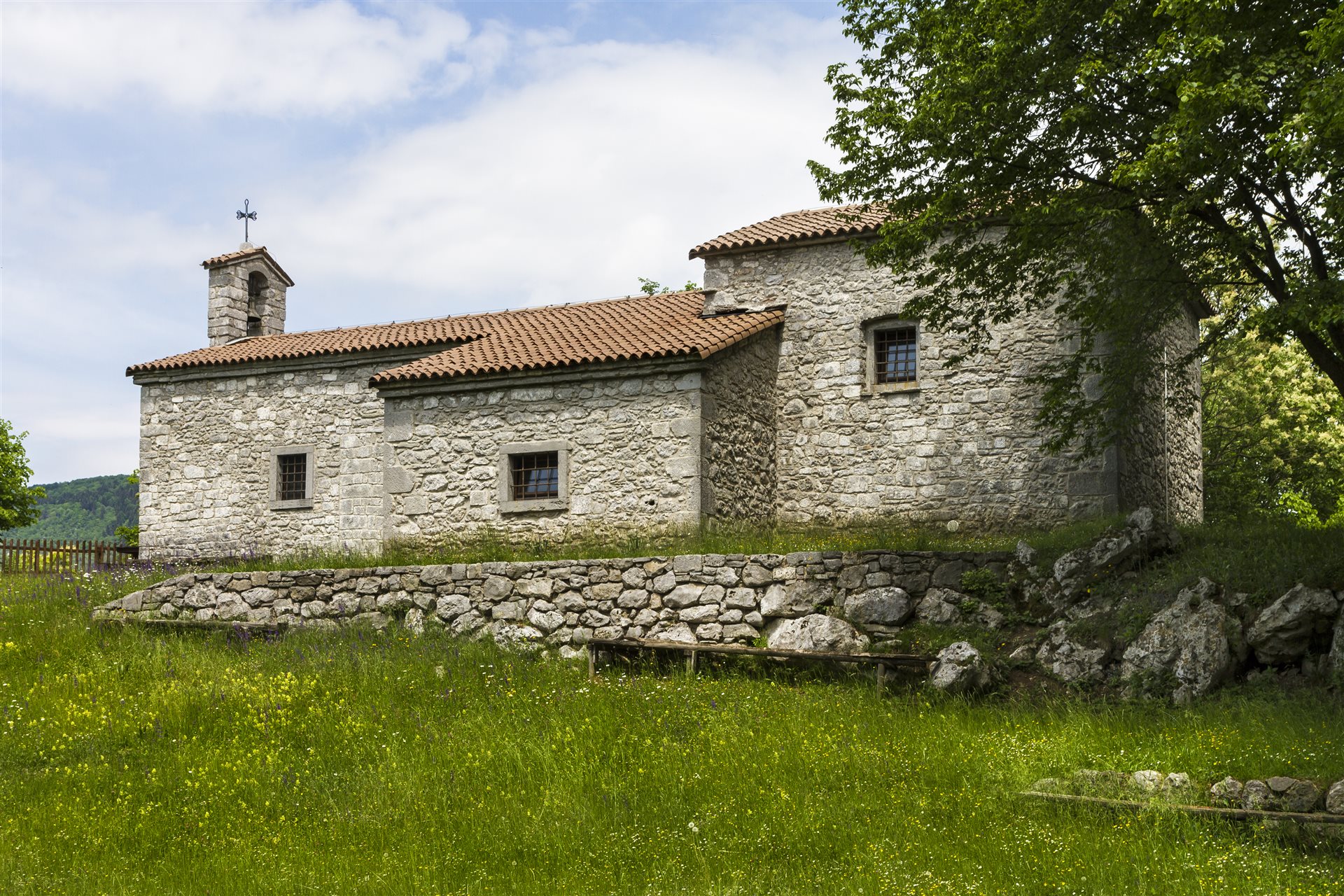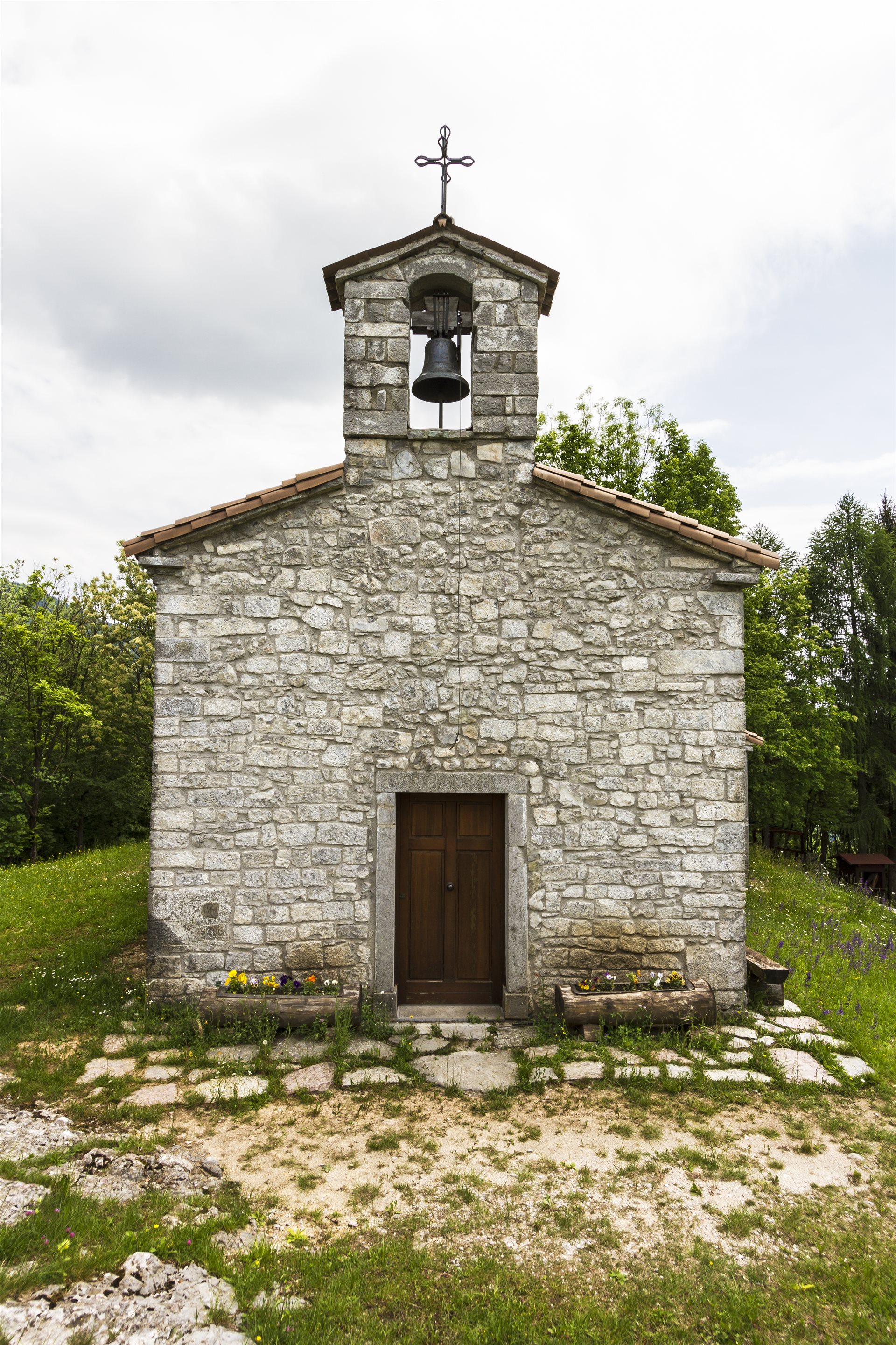 Sie können eine herrliche Aussicht von dem Hügel, auf dem sich das kleine Gebäude befindet, sowohl in Richtung Karfreit als auch auf das Pradolino-Tal. Die Kirche wurde im 13. Jahrhundert auf einem spätantiken Fundament erbaut, und nach den Schäden durch die Erdbeben von 1511 und 1513 wurde sie renoviert und 1869 erneut restauriert. Das heute noch sichtbare Gebäude verfügt über einen einschiffigen Grundriss mit einem quadratischen Presbyterium, das höher als das Kirchenschiff ist und möglicherweise im 18. Jahrhundert hinzugefügt wurde. Das Mauerwerk besteht aus sichtbarem Stein mit regelmäßigen Quadern, die an den Ecken verstärkt sind; die Fassade ist durch die einzige Eingangsöffnung geprägt, die in Stein eingefasst und von einem kleinen Glockengiebel überragt wird. Die Dachstruktur ist geneigt, mit Ziegeldeckung und einer darunter liegenden Steinverkleidung an den beiden langen Seiten des Umfangs.
