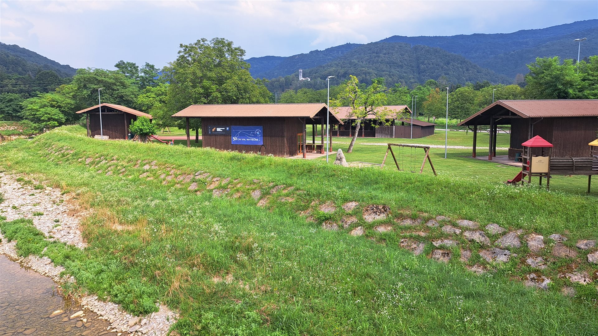 In the village of Merso di Sopra, opposite the Town Hall and next to the school buildings, lies Puppin Park. This spacious green area runs alongside the Erbezzo stream and offers visitors a peaceful oasis away from traffic. The park features various games and attractions for children of all ages, set among shaded areas with trees and lawns where one can walk and relax in complete safety while also engaging in physical activities. Large covered structures, also used in August for the annual San Rocco festival, make these equipped kiosks available for private parties and gatherings. The environment is also ideal for outdoor picnics and serves as a starting and return point for numerous walking and biking excursions. Next to the park, the sports complex includes a football field, a practice field, a gym, and a rock climbing gym open to everyone.