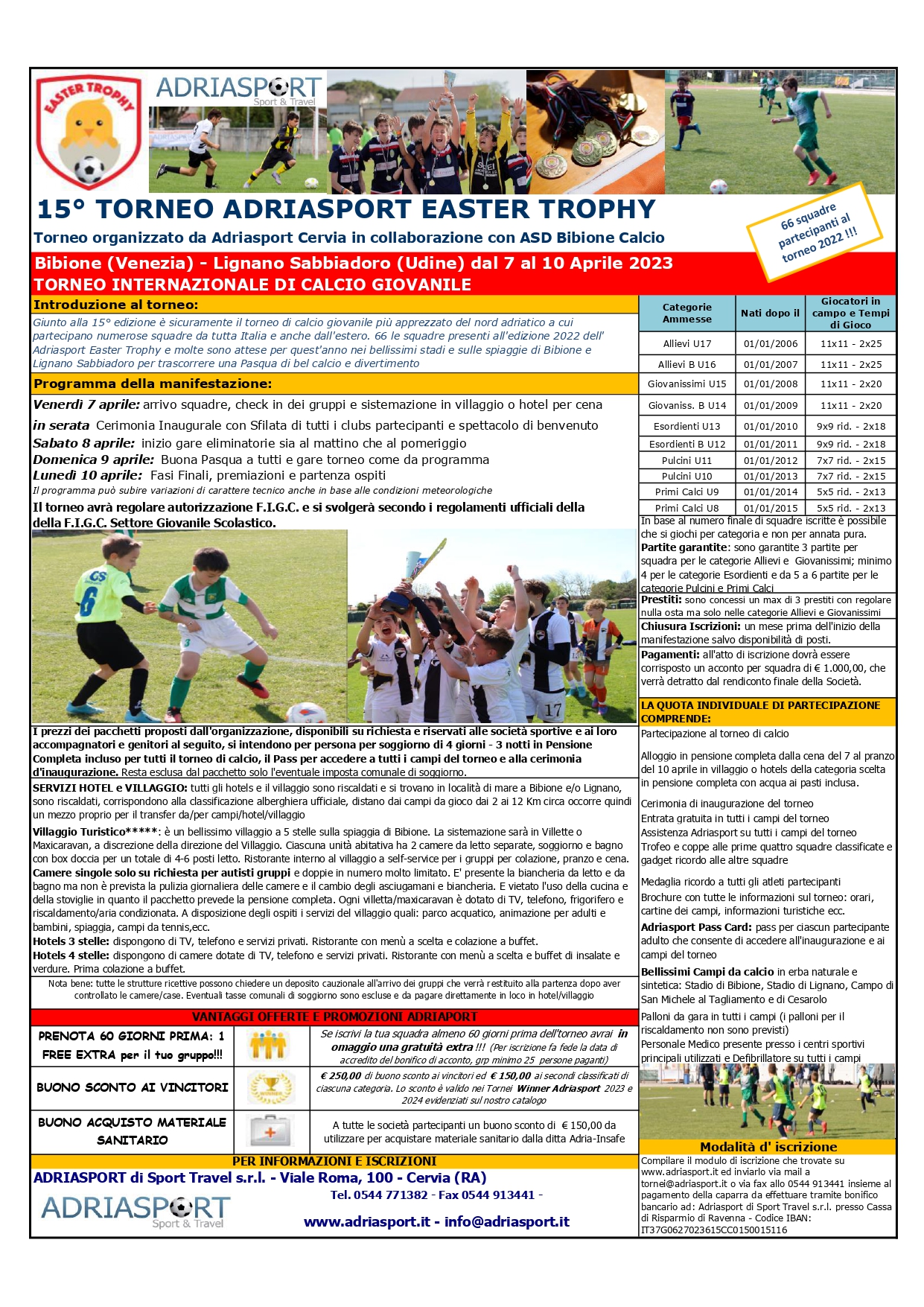 66 le squadre presenti all’edizione 2022 dell’ Adriasport Easter Trophy e molte sono attese per quest’anno nei bellissimi stadi e sulle spiaggie di Lignano Sabbiadoro e Bibione per trascorrere una Pasqua di bel calcio e divertimento.