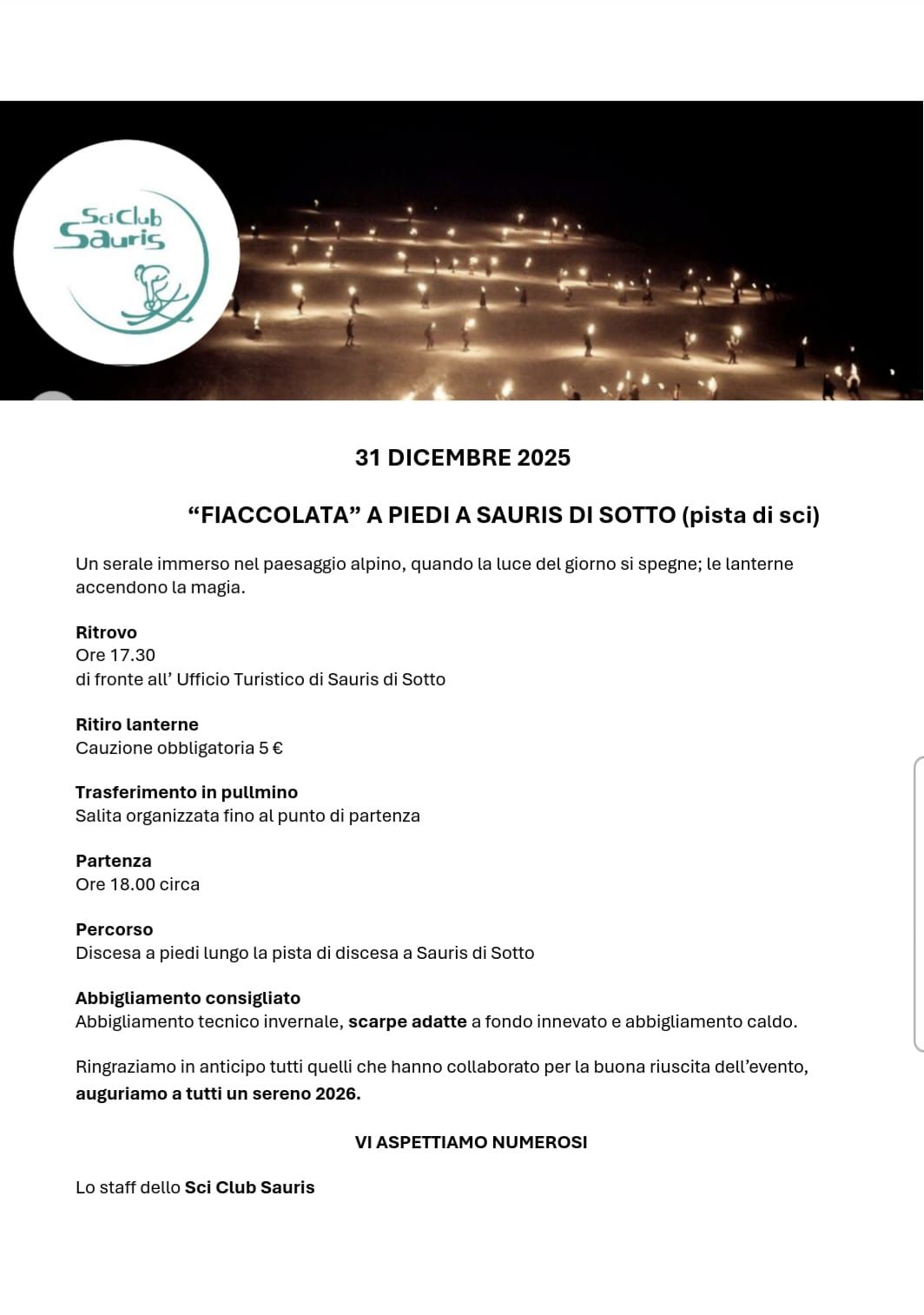 Lo Sci Club Sauris organizza una coreografica discesa a piedi rischiarata dalla magica luce delle lanterne. Un serale immerso nel paesaggio alpino, quando la luce del giorno si spegne; le lanterne accendono la magia.