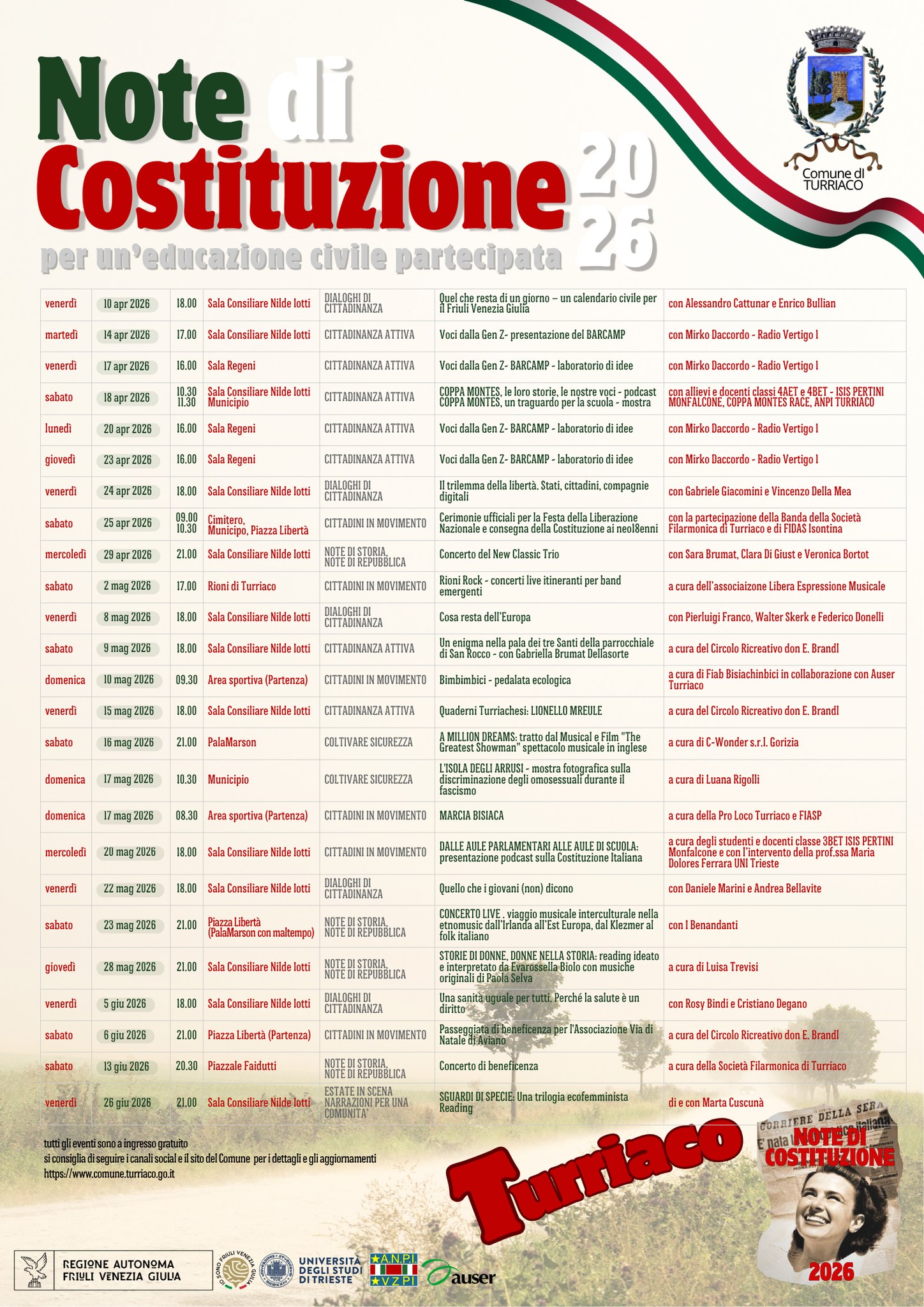 Comune di Turriaco, ANPI, Auser, Università degli Studi di Trieste