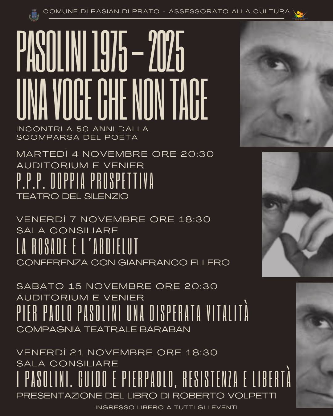 Rassegna di incontri, teatro e riflessioni per ricordare Pier Paolo Pasolini a cinquant’anni dalla sua scomparsa.