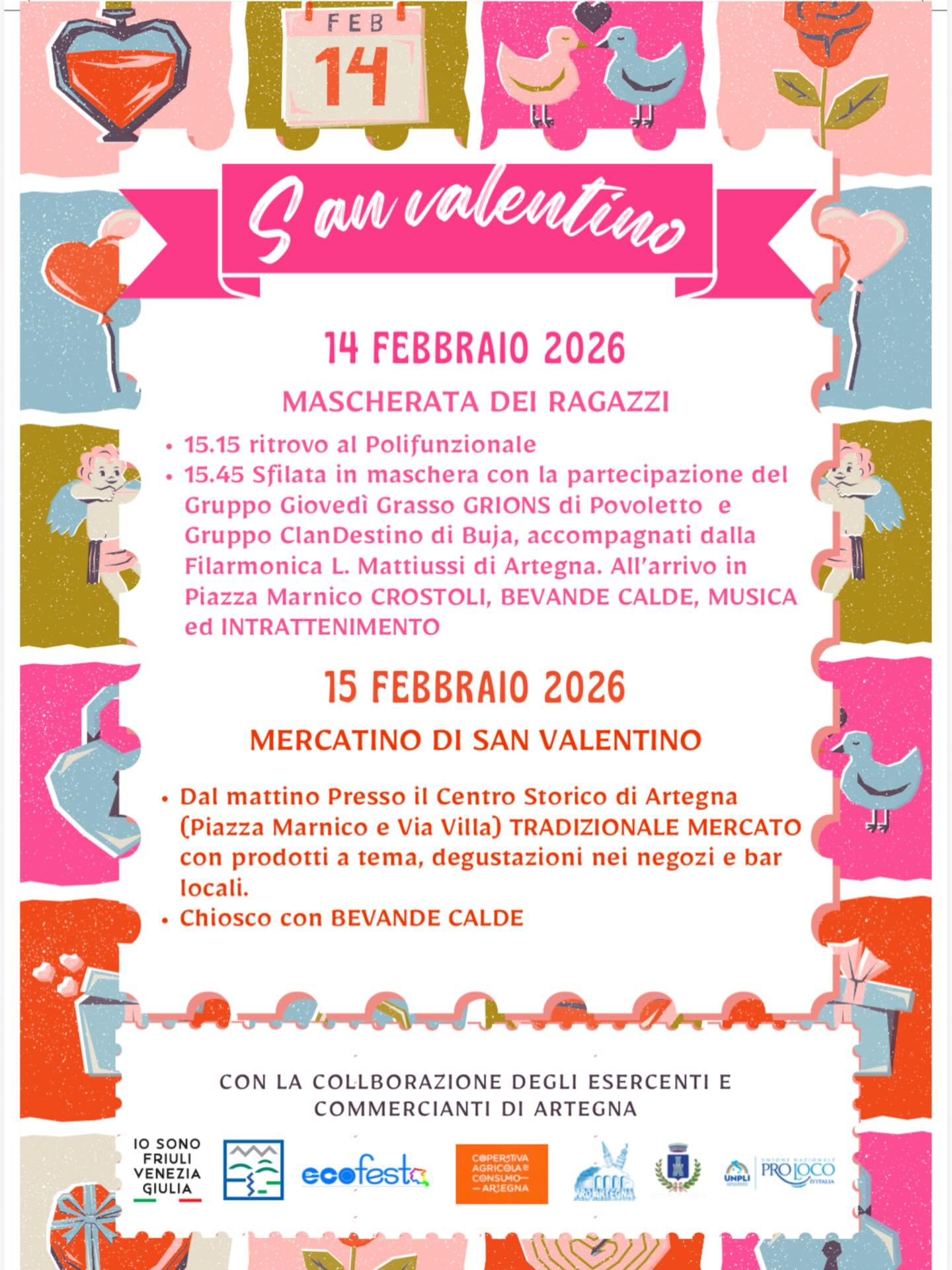 Un weekend ricco di eventi, intrattenimento e buon cibo per festeggiare San Valentino ed il Carnevale! Si inizia sabato 14 febbraio con la Mascherata dei ragazzi mentre domenica 15 si terrà il tradizionale mercato di San Valentino.