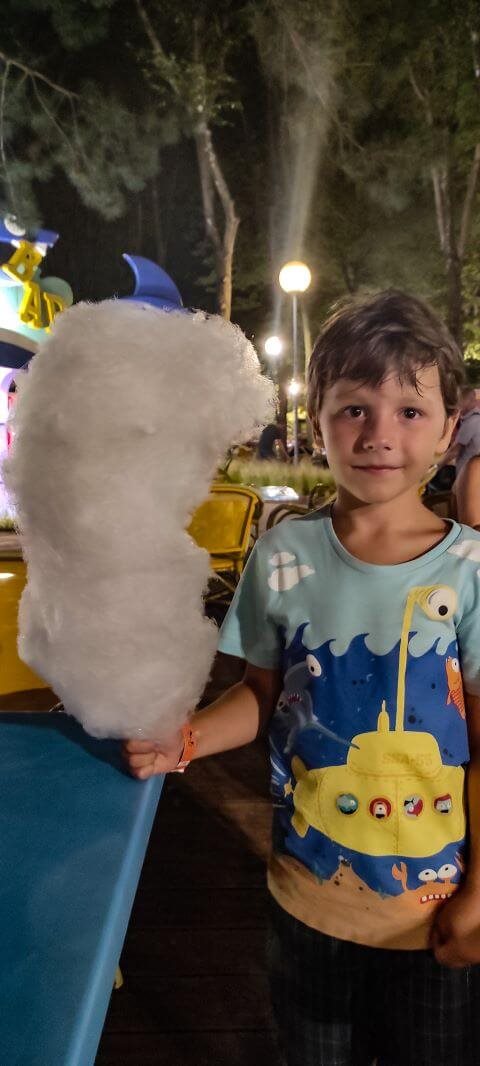 Non potevamo finire la serata se non con un enorme zucchero filato e patatine da mangiare mentre ci raccontavamo avventure vissute e i bambini ricominciavano nuovamente il giro delle giostre.