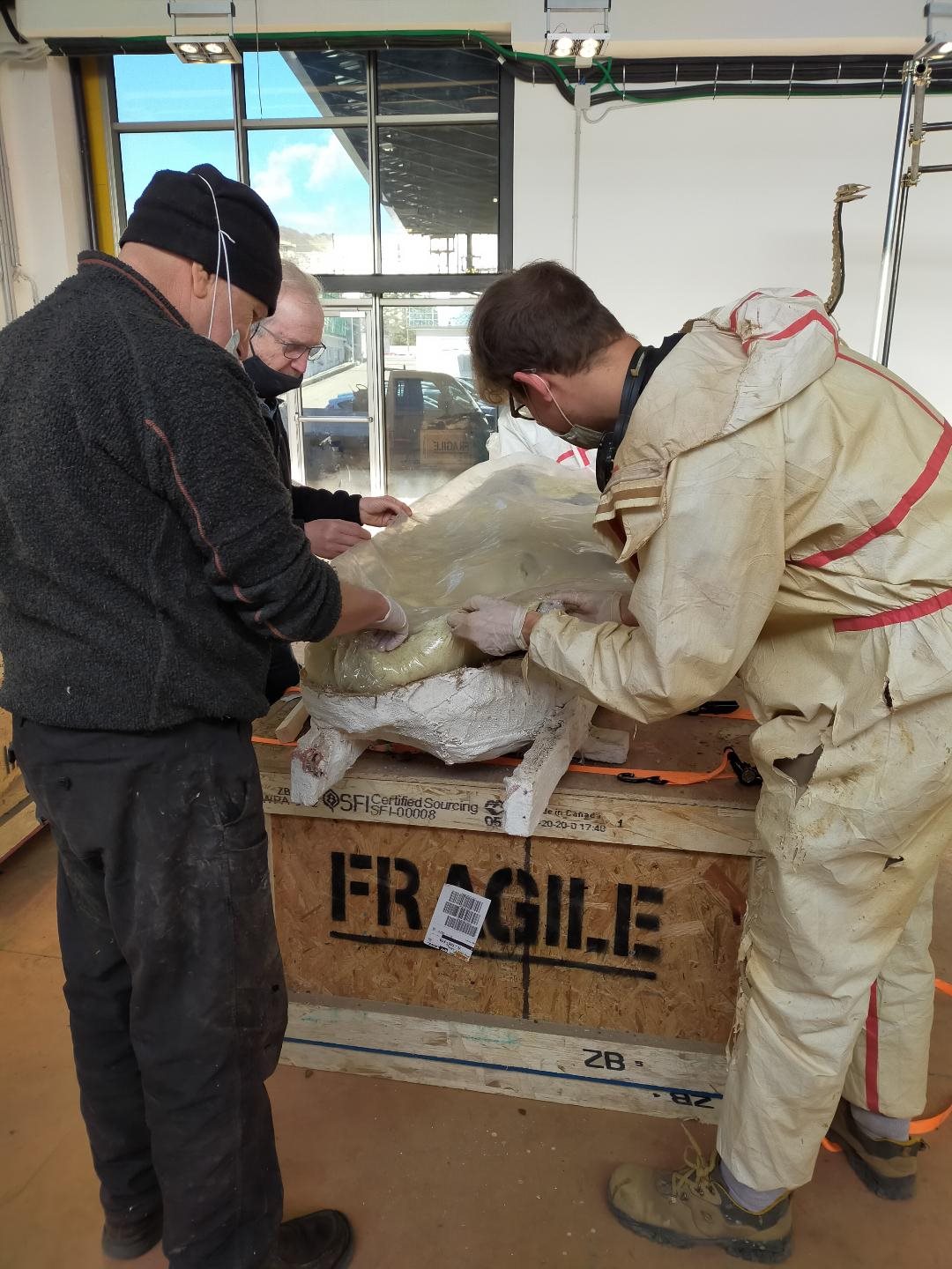 In questi giorni è stata montata l’intelaiatura e sono stati fissati i femori, mentre si procede con l’estrazione delle ossa dalle camicie. La speranza di chi sta lavorando ogni giorno su Big John è quella di arrivare il prima possibile a svelare al pubblico, in presenza, le fasi più delicate e spettacolari della lavorazione e del montaggio, per mostrare a tutti come il gigantesco dinosauro “rinascerà” a Trieste.