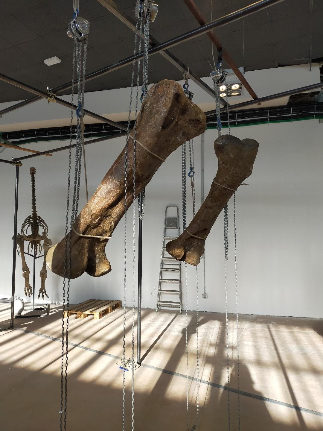 Prima sono stati fissati i femori giganti, poi sarà il turno delle altre ossa. Ed è un’emozione incredibile assistere al “ritorno in vita” di un dinosauro enorme, per anni rimasto sepolto oltreoceano, e arrivato in Friuli Venezia Giulia dopo un lungo viaggio, a conclusione degli scavi.