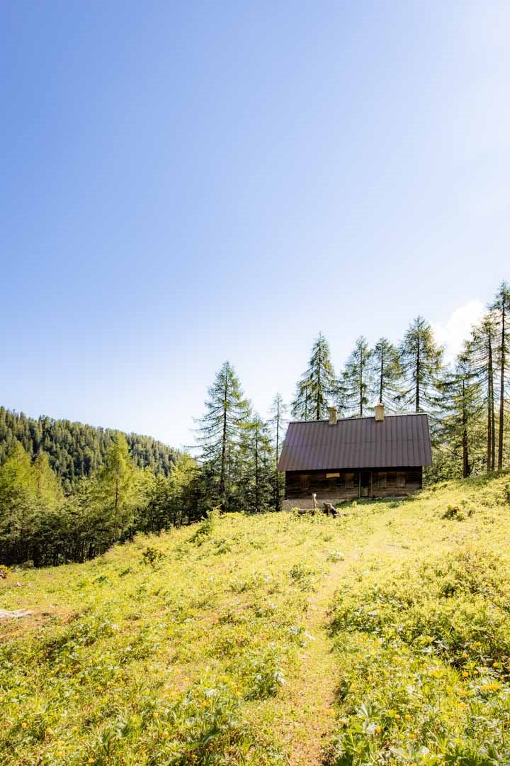 La salita non molla mai per tutti gli 880 m di dislivello. In alcuni punti ho trovato alberi caduti sul sentiero, ma si riesce a sorpassarli. Ci vorranno circa 2 ore per raggiungere la bella radura con Capanna Cinque Punte circondata dal bosco e dalle Cinque Punte di Raibl.