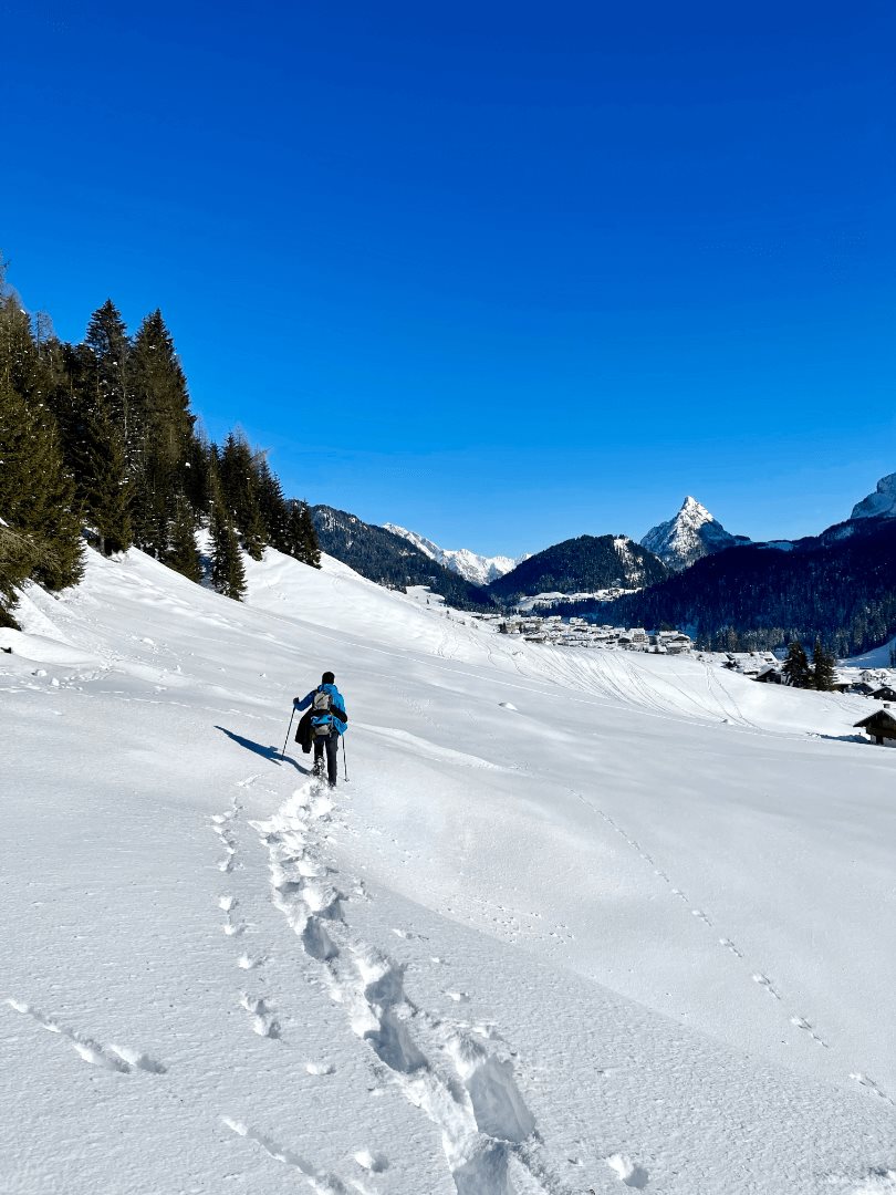 Tra i più facili c’è quello verso il laghetto ghiacciato Ziegelhutte contornato dalle alpi innevate forma uno scenario incantevole; in alternativa c’è quello che costeggia la pista di fondo a Cima Sappada che consiglio per le famiglie, molto facile e pianeggiante ai piedi del Monte Siera.