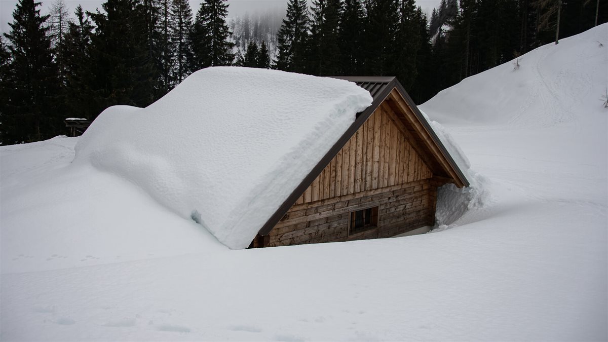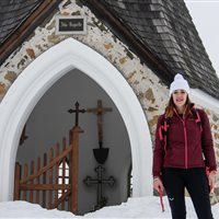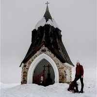 Purtroppo, a pochi metri di dislivello dalla meta, la nebbia inghiotte il paesaggio. Il cielo è tutt'uno con la neve e malapena scorgiamo Malga Rauna, sepolta dal manto bianco. Ancora pochi metri e Cappella Zita ci appare in tutta la sua delicata bellezza.