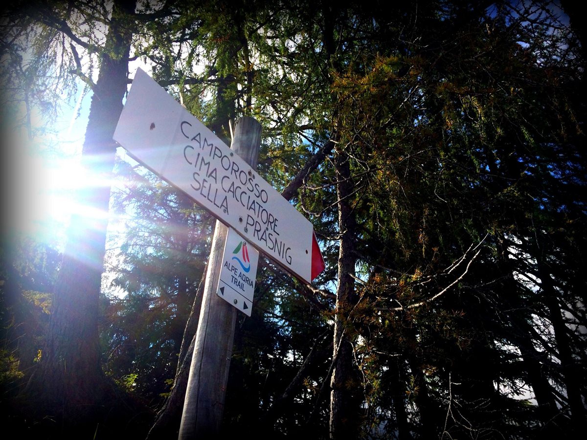 Oltrepassato l’incantevole borgo, percorriamo il sentiero del Cammino Celeste e dell’Alpe Adria Trail che in questo tratto coincidono, e, ci incamminiamo verso Cima del Cacciatore, posizionata tra due Valli importanti: Val Saisera e la Val di Riofreddo.