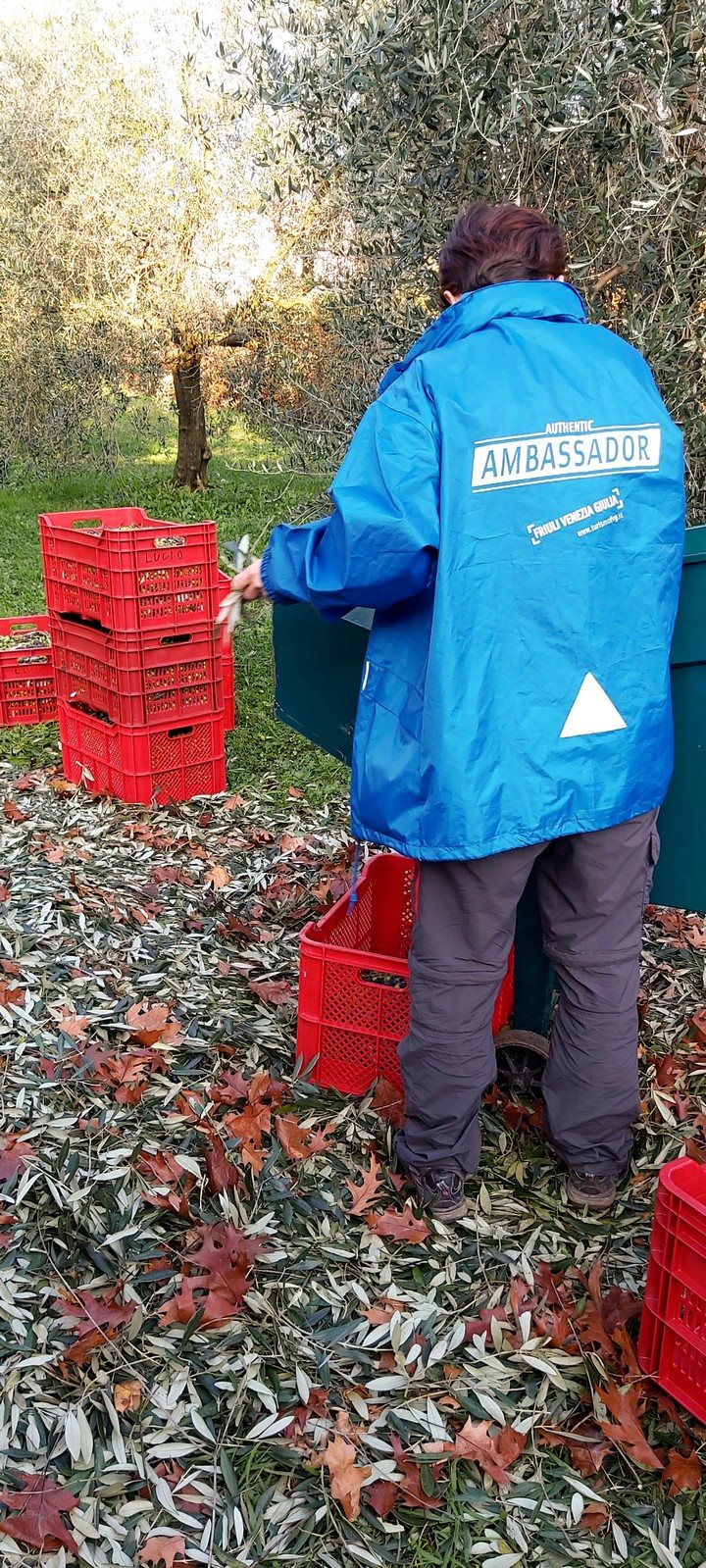 Guided by the voices, I make my way among the olive trees damp with dewdrops, the nets laid on the grass and the greetings of the pickers welcome me. From this moment on the hours fly past, punctuated by the noise of the beaters knocking down the olives and the cheerful voices in this fantastic San Martino summer that gives us a clear sky and a shining sun. The red crates of olives are taken to the oil mill, a few hundred metres from the field and it is still slightly daylight, after folding the nets, when I walk over to see how David - the Danish mill worker settled in Friuli extracts the oil.  Overwhelmed by the change from the tranquillity of the field to the noise of the oil mill, I observe the mill worker’s movements from afar as he restlessly passes from one machine to another, waiting for the first oil of the day. At last there it is, an incredible colour and a fragrance never smelt before pervade the oil mill. After tasting the first oil, at last, he relaxes and smiles. The extra virgin olive oil, extracted cold in less than 6 hours after harvesting, between the 46th and 47th parallel, the northernmost area in the world to grow olive trees, is ready to be tasted. A few drops on some hot bread and the enthusiasm is immediate: extra virgin olive oil is a real tribute of nature.